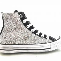 Questo articolo viene realizzato con 250 borchie a cono colore argento, oppure oro, montate artigianalmente a mano sulla parte interna ed esterna della scarpa con rivetto interno. Sul retro applicata una stellina colore argento.