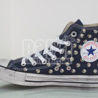 Questo articolo viene realizzato con 80 borchie a cono colore argento, oppure oro, montate artigianalmente a mano sulla parte esterna della scarpa e sul retro con rivetto interno. Lavorazione “effetto sporco” per un look vintage della calzatura.