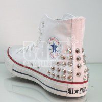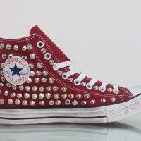 Questo articolo viene realizzato con tessuto in glitter colore argento cucito in entrambi i lati della scarpa e con borchie a cono colore argento, oppure oro, montate artigianalmente a mano con rivetto interno.